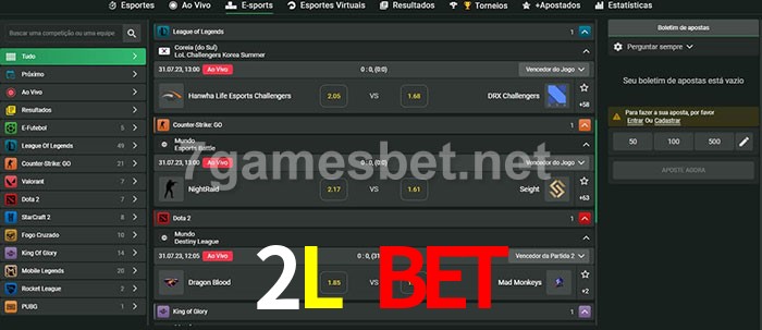 O 2L Bet oferece uma grande seleção de opções de apostas em e-sports com probabilidades competitivas